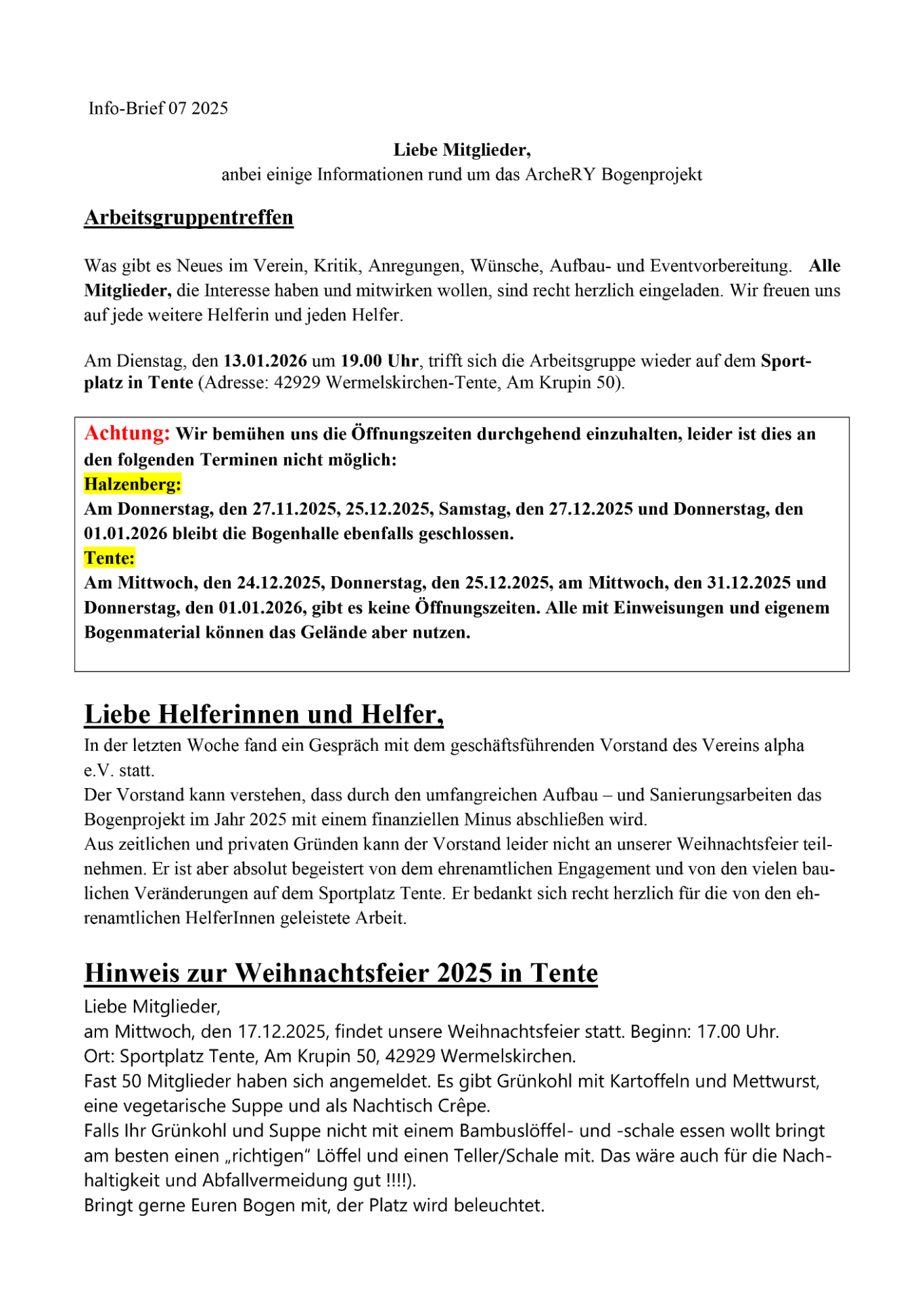 Am 21.3.2026 findet in Tente die Einweihung des barrierefreien Bogensportgeländes statt.